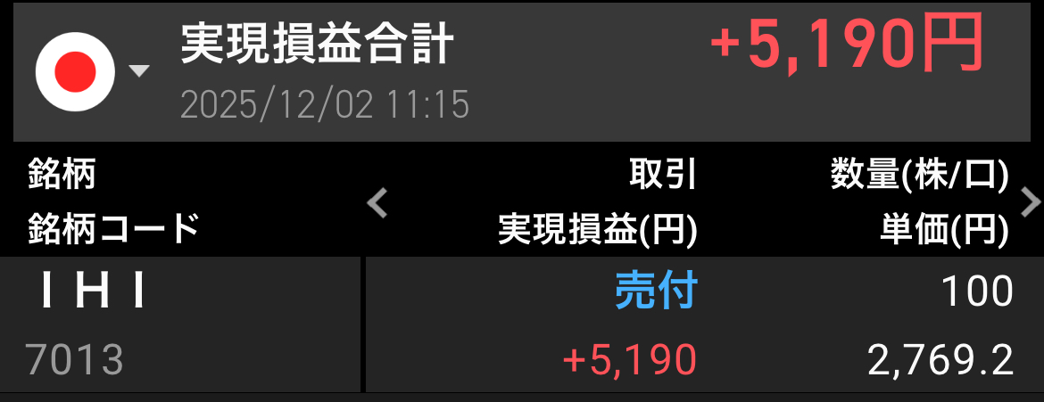 昨日は病院のため待合室でIHIでデイトレしました。